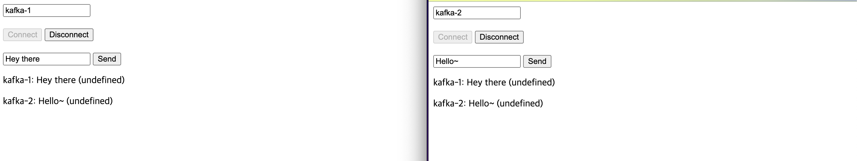 위 코드를 전부 작성한 뒤, 실시간 채팅을 테스트 해볼 수 있었다.